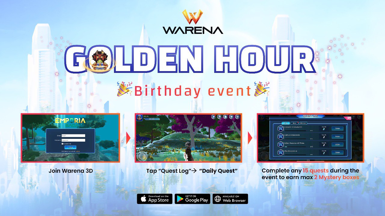 * Prize: Mystery box (has game character which can use in both Warena 2D & 3D version)